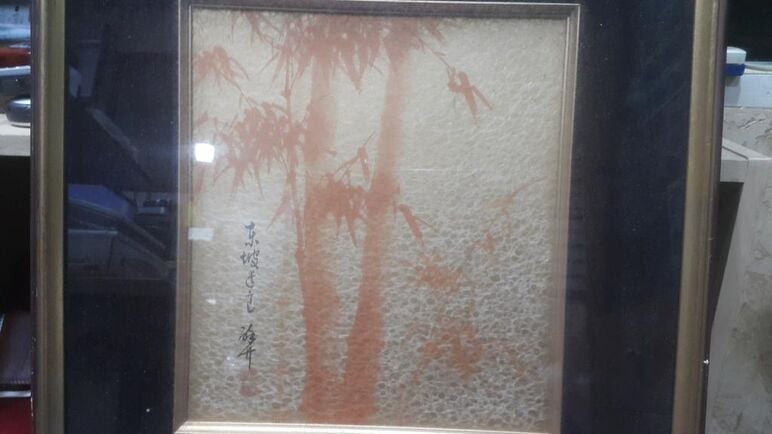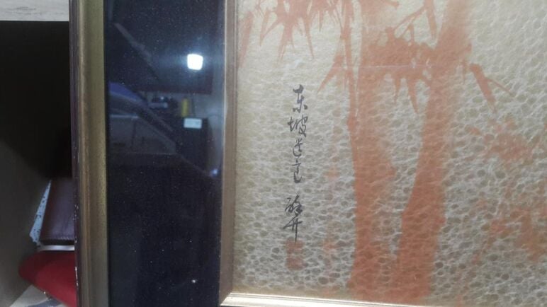 - 배경처럼 대나무가 그려져 있는데 바탕이 금박이 들어간 서예지로 보입니다. 특이한 그림이군요.