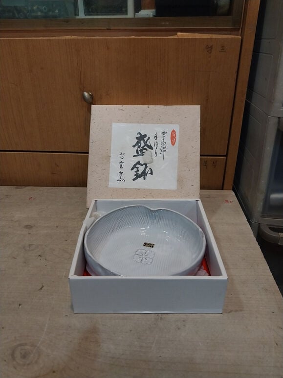 1) 지름 7에 높이 4 센티 정도의 수반으로 보입니다. 토기형이지만 바닥만 그렇고 나머지는 유약으로 칠해져 있는데 오밀조밀 이쁘게 잘도 만들었네요. 작가 작품.