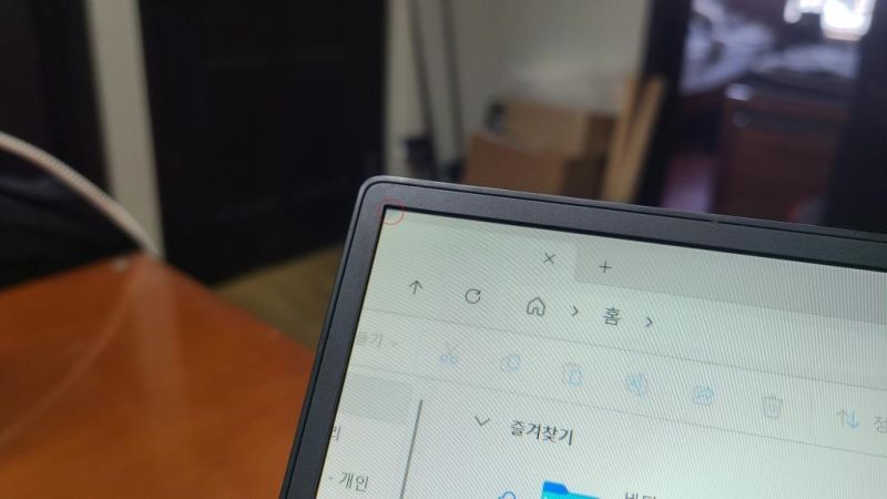 잘 보이지 않지만 마지막 사진 동그라미 친 부분 모서리 외곽쪽 작은 약한 얼룩이 있습니다.