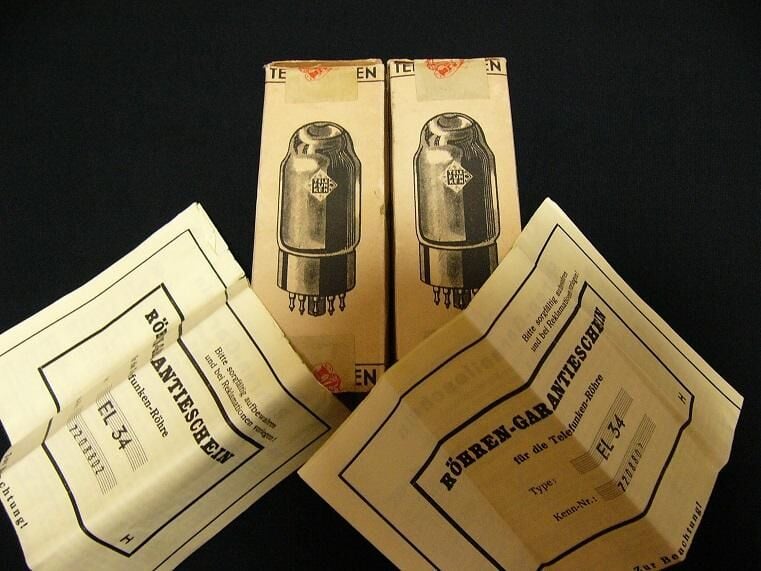 사진속 텔레푼켄 EL34 메탈베이스 미사용 신품 BOX 1조 실사진 참고.