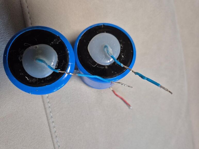 젠센 콘덴서는 리드선을 외부에서 땜하는 구조라서 대부분이 떨어져 납땜에 글루 처리해서 사용합니다.