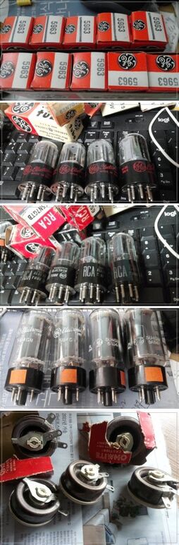 1.GE5963----4개18만-(페어,미사용) 2.GE6SN7GTB---4개(미사용) 3.RCA6SN7GTB---4개(미사용) 4.GE5U4GB---6개 ---2개 10만(미사용) 5.옴마이트400옴75W---4개 일괄---24만(미사용) 송료4000원 010-8527-4982