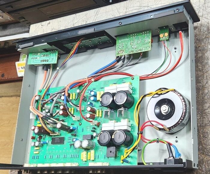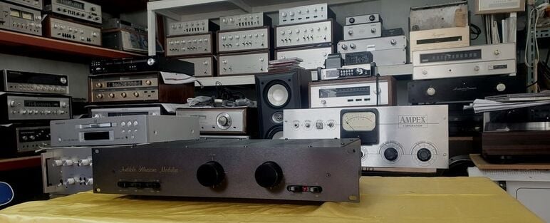 듀얼모노 타입 프리앰프입니다. 진공관 글씨가 희미해 알수없지만 구관으로 보입니다.