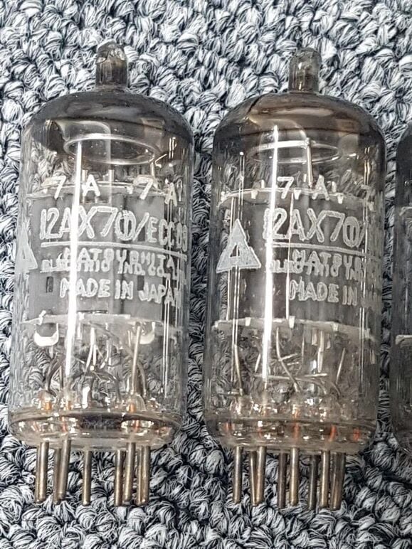 -(구글번역)... 빈티지 마쓰시타 재팬이 만든 12AX7 또는 ECC83 튜브, 마쓰시타 라벨이있는 새로운 오래된 주식입니다. 이들은 기타 앰프와 튜브 하이파이에서도 훌륭하게 들리는 회색 판입니다. Matsushita Japan 튜브 공장은 Mullard UK에 의해 설립되었으며이 튜브는 뚜렷한 영국 소리를냅니다.
