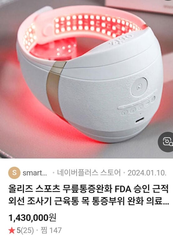 '올리즈(OLIZ) 스포츠 무릎 통증 완화 FDA 승인 근적외선 조사기' 또는 **'올리즈 무릎통증 완화 의료기기'** 입니다.