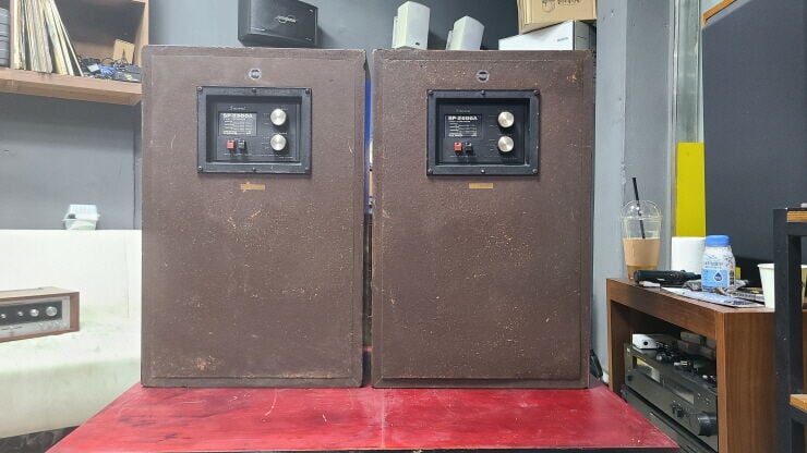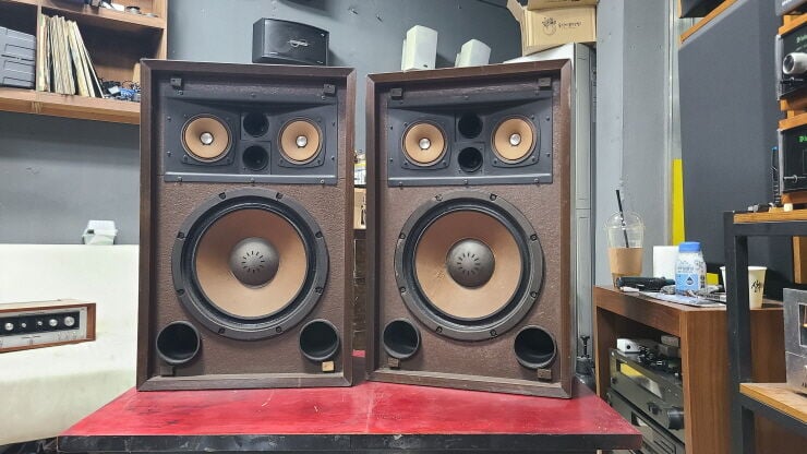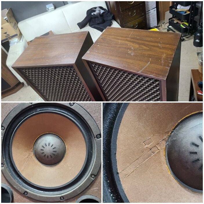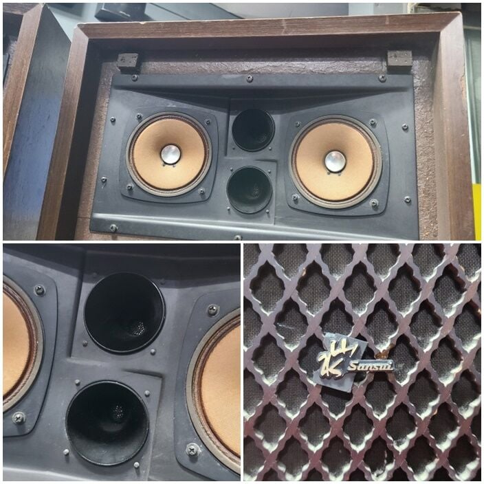 고급격자스피커로 인클로저는 자잘한 세월감있습니다.