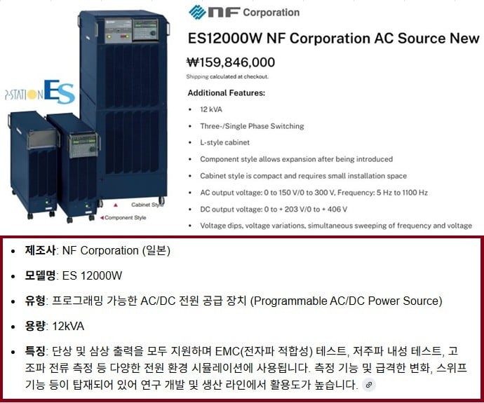 NF Programmable ACDC Power Source ES 12000W와 TG1703 Three Phase Signal Generator A51226