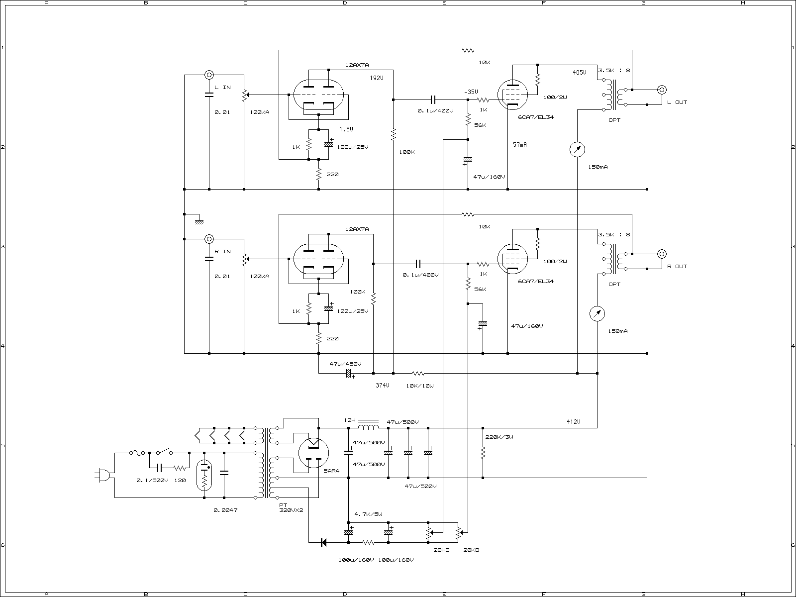 그 회로에 EL34나 6550, KT88 을 조정없이 꽂아도 무리가 없었다는