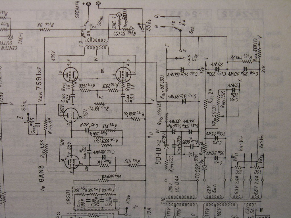 파워앰프부 한채널과 전원부 회로입니다. 이규영님을 비롯한 여러분들께서 지적하신 대로 차이나는 곳이 많군요. NFB도 많은 차이가 있어 보입니다.