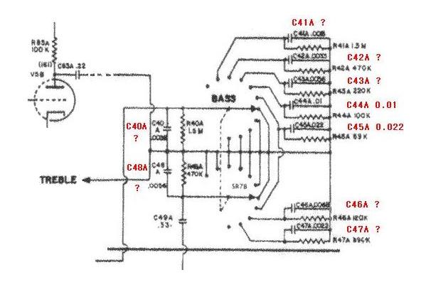 그간 구한 회로도에서 BASS 톤콘트롤 부분의 숫자표시가 희미하여