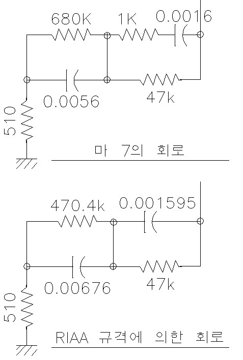 마7의 회로도와 정확한 계산 수치의 비교입니다.-조금 다르게 해놨죠.
